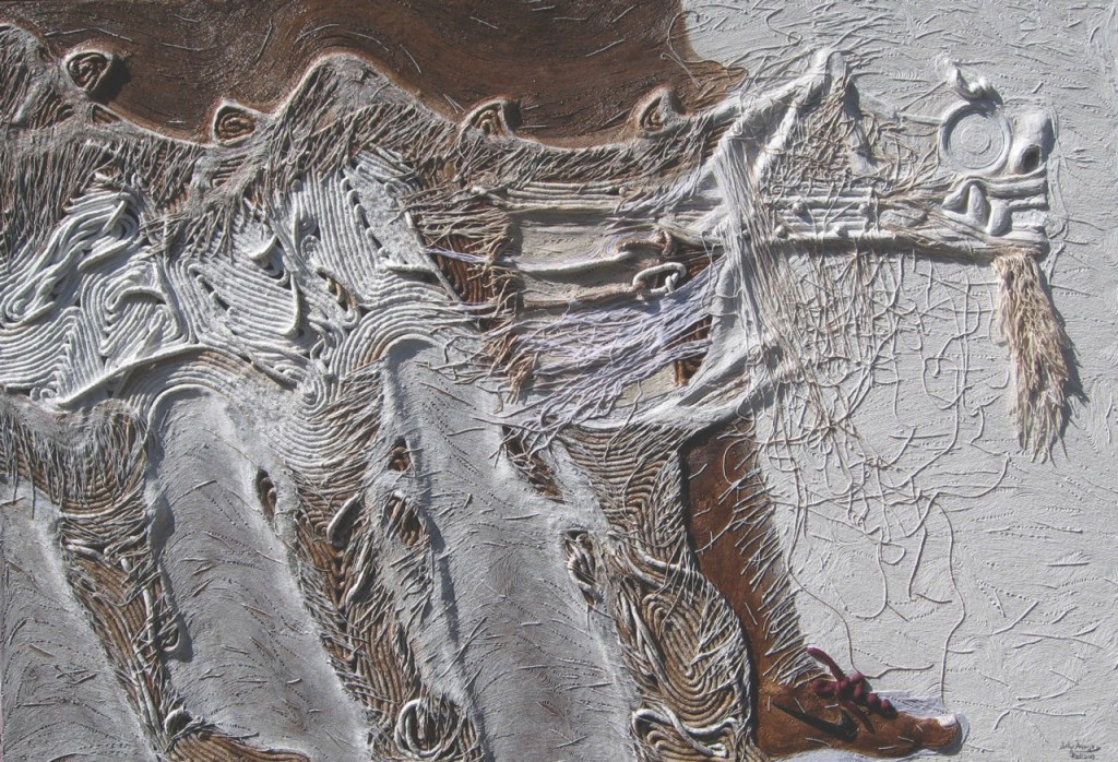 “The work is themed upon the processes I encounter in life, the process of making the artwork, and the processes within the journey of life. The footprints are symbolic and explain my search for identity,” the artist said and continued. “As a Balinese, there are many processes to be endured within the cycle of life. For example, the traditional Balinese calendar only allows me to work on my art for 15 – 20 days the rest of the month requires me to attend to the customs and traditions at the heart of my culture.”