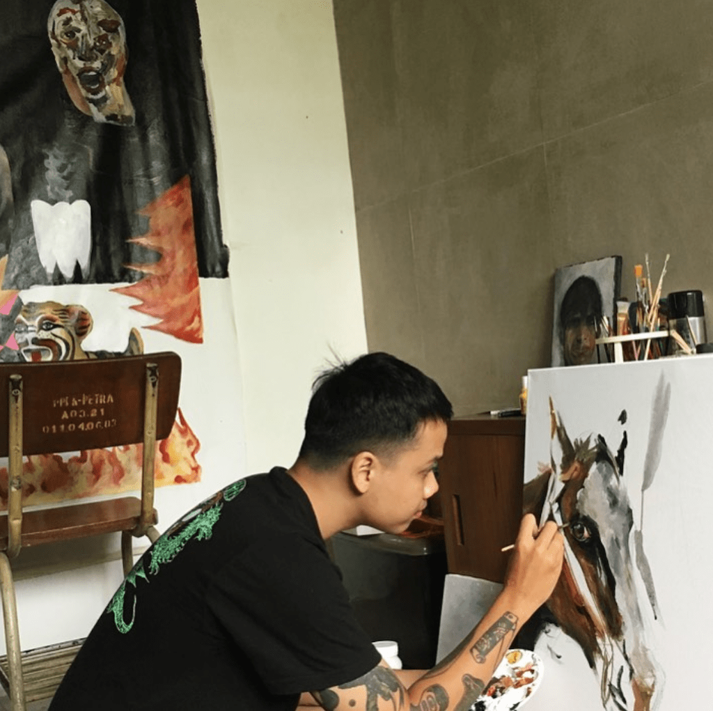 “I’ve been drawing since high school, then I sold my illustrations for local and international clothing brands. After that, during college, I often did murals in restaurants and cafés in Denpasar and even Singapore.” Andre’s first venture into art-making was defined by ultra-detailed pen sketches based on techniques such as pointillism adopting Pop Art, Japanese Anime and Indonesian cultural icons. “Nowadays I enjoy watching YouTube and make observations of the current global social-political paradigm, and this inspires my artistic ideas.”