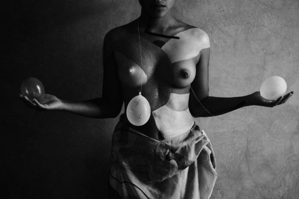 ‘Human’, Febry’s 2020 collaboration with photographer Govinda Rumi and model Aziza is a series of black & white and colour digital images exploring art on the human body. Bodypaint, printed fabric, balloons and strings combine with the female form unlocking the extraordinary potential of three talented young creatives. The outcomes are wonderfully imaginative ideas, rich in expression and ethereal poetic qualities. Superb negative spaces highlight the compositions. “I enjoy being with people, and making art with others always gives me a blast of energy and inspiration. Many years ago, I observed several artists doing community art projects. I was inspired by how it united people,” said Febry, born in Bogor, West Java, in 1989.