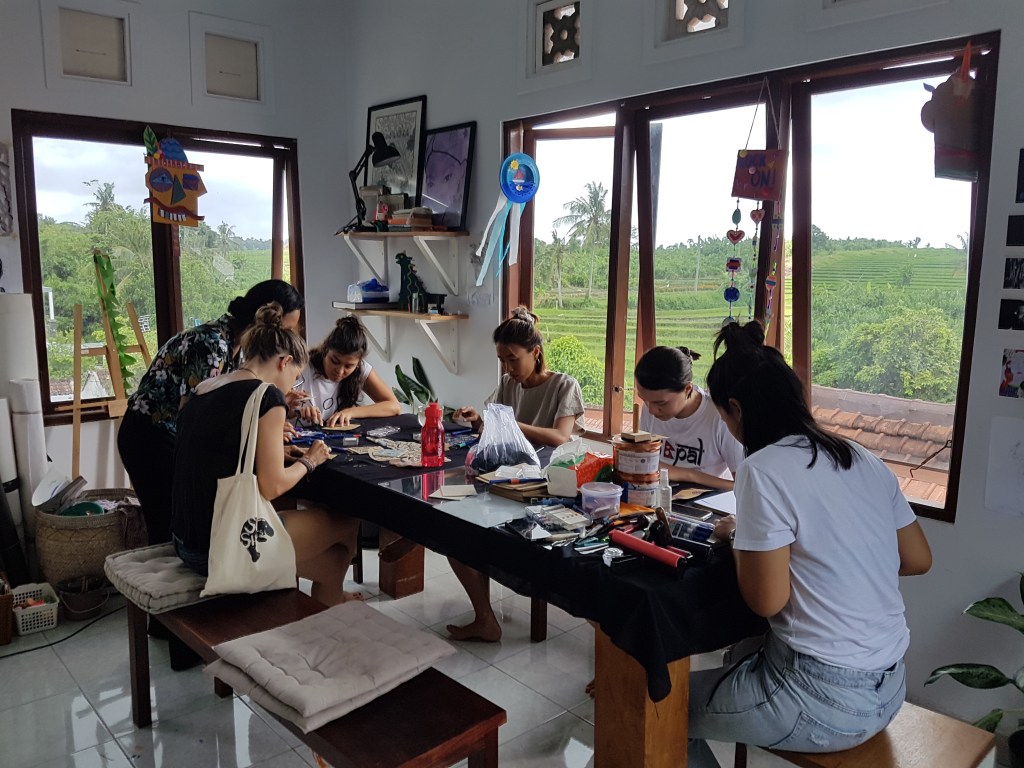 “I began advertising my art classes through Instagram and by word of mouth. I was very surprised by the response,” Bunny admits. “I teach children and adults; my main focus is children; their capabilities and imagination are vastly different from adults. I hold classes almost every day, sometimes twice a day, with groups up to four. Regular students now number ten, while I have taught more than fifty people, including parents. Students come from the Canggu area and Denpasar, even as far as Ubud.”
