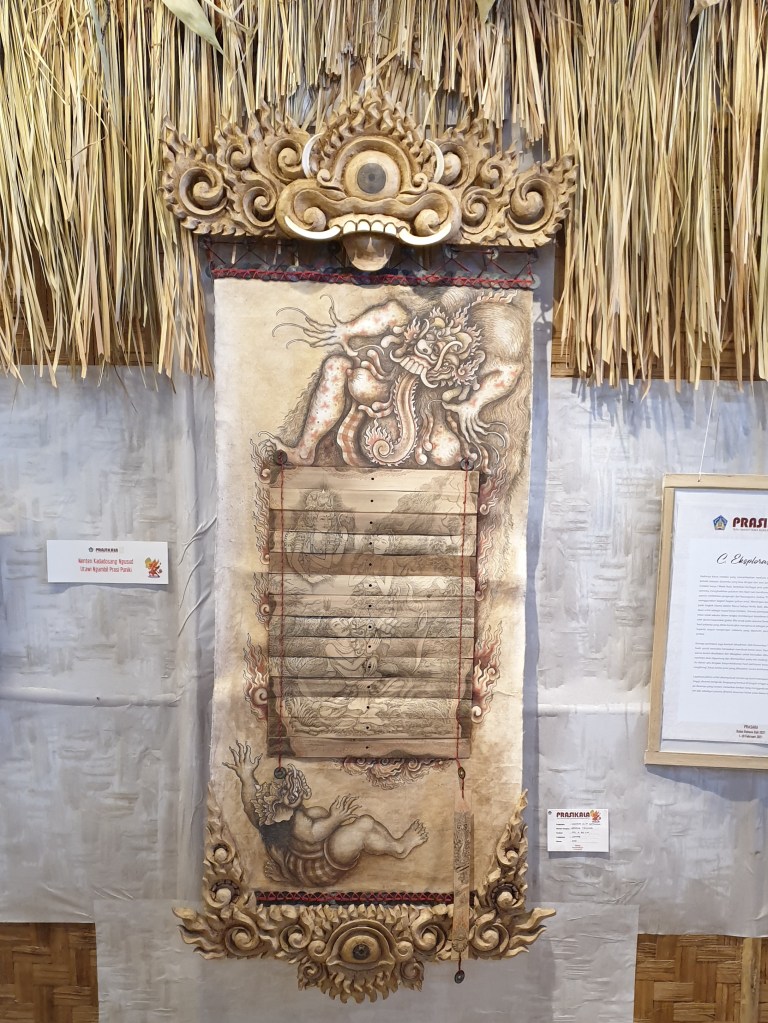 ‘Prasara Prasikala Nukilan Taru Mahottama’ an exhibition of eighty-nine works of Prasi lontar by sixty Balinese and Indonesian artists from across the generations, was held in the Kryiya Hall at Taman Budaya Bali Art Center, Denpasar 1 – 28 February 2021. In a celebration of the art form, the exhibition included a seminar and workshop featuring the leading authorities from around the island as a part of Bulan Bahasa Bali 2021 (Balinese Language Month), a new annual program initiated by the Cultural Office of the Provincial Bali Government.