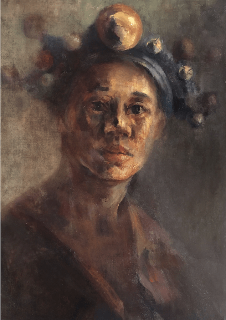 ‘Chinese Head Dress’ by Dutch painter Noella Roos. Oil on panel, 40 by 30 cm. Image courtesy of Noella Roos