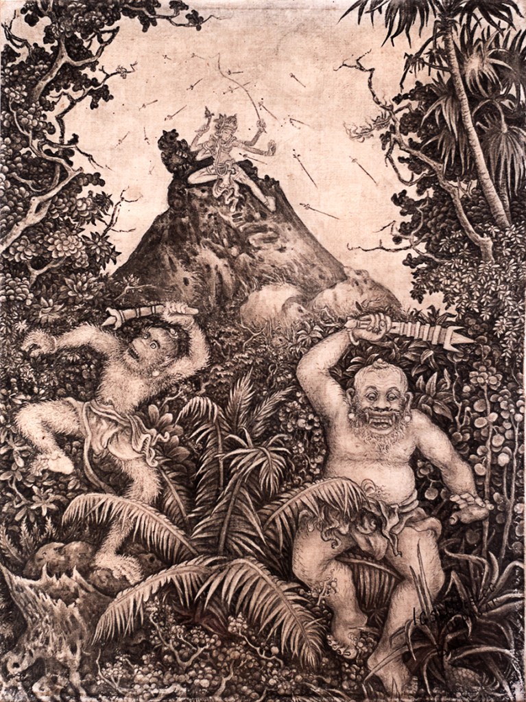 SEMARADAHANA – Gusti Deblog, circa 1940.50x35cm.Tinta Cina diatas Kanvas(koleksi Griya Delod Pasar Sanur)