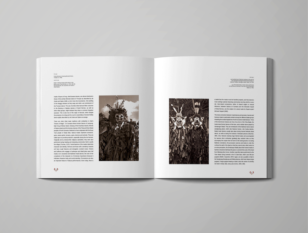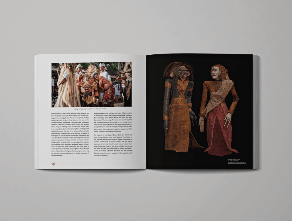 Masks of Bali: Between Heaven and Hell is a hefty and monumental production weighing seven kilograms. This entertaining read will inform scholars and those specialized in Balinese studies but also a general audience, including people interested in international performing arts, sculpture, Asian art and history. Published by Talisman Publishing, Singapore, in 2022 in a hardback slipcase, every attention to magnificent aesthetic detail is made by designer Ni Luh Ketut Sukarniasih.
