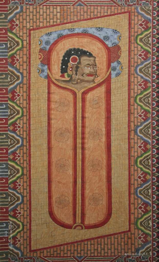 Born in 1966 in Banjar Siku, Kamasan village, Klungkung, East Bali, Mangku Muriati is the daughter of Mangku Mura (1920-1999), who is considered one of the foremost Kamasan artists of his generation. During her childhood, she assisted him in colouring paintings and began learning the traditional techniques and narratives. What distinguishes Mangku Muriati is that she also academically trained at the Udayana University Faculty of Fine Art and Design in Denpasar and learned modern painting techniques and discourses between 1987 and 1993.