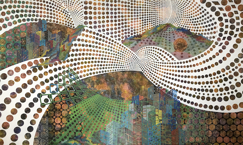 Imagine if we took a mega-microscopic camera to our environment to capture the mechanisms of dynamic natural systems. Revealed are never-ending, self-repeating patterns that continue in expanding scales known as fractals. Fractal geometric patterns are ubiquitous in the universe, helping us to understand the energetic fabric that contains all life. Eastern philosophy, Western science, math, and art collide in Behartawan’s complex images, also known as Awangart. His creations combine drawing, painting, digital design and photography.
